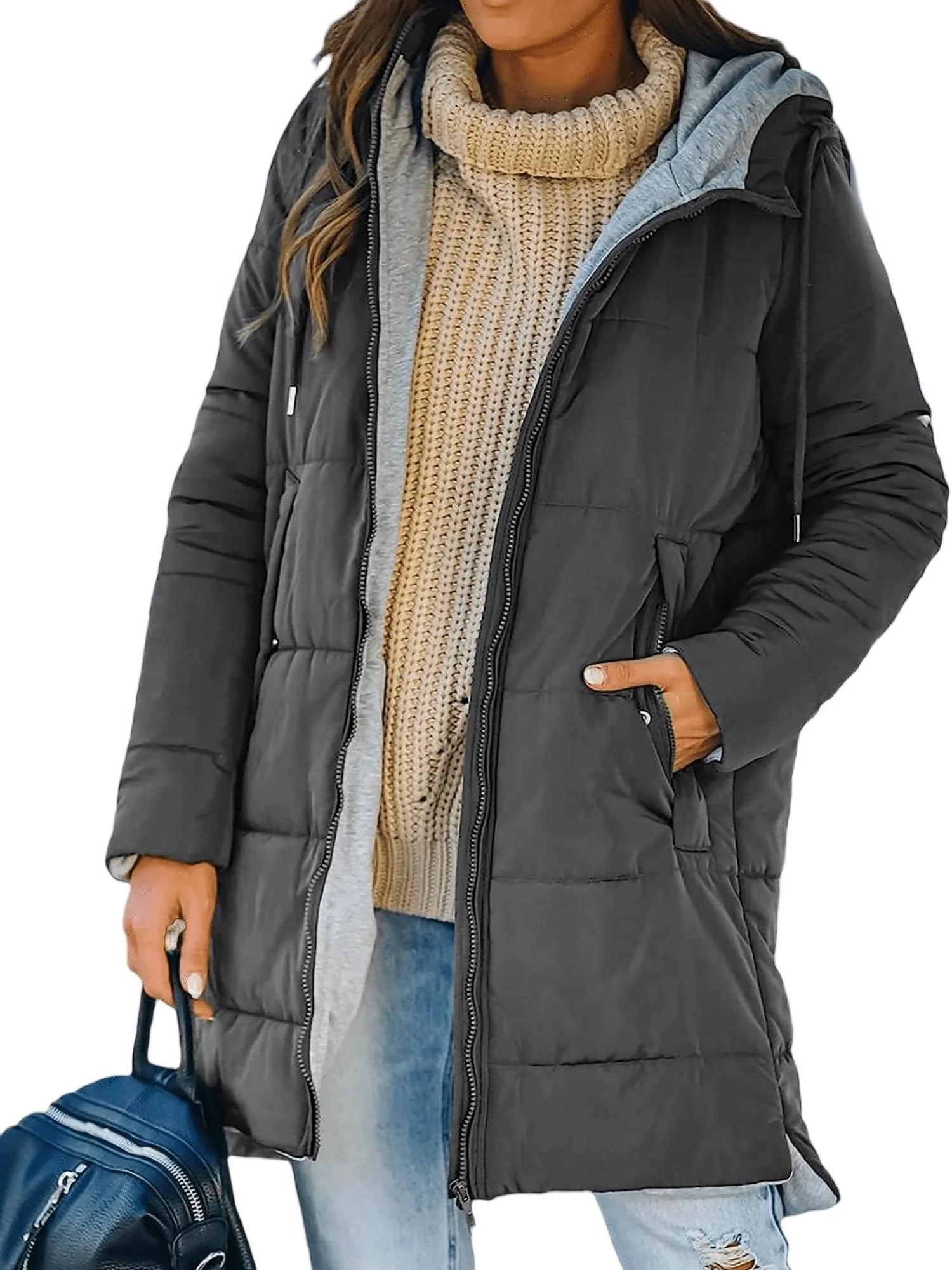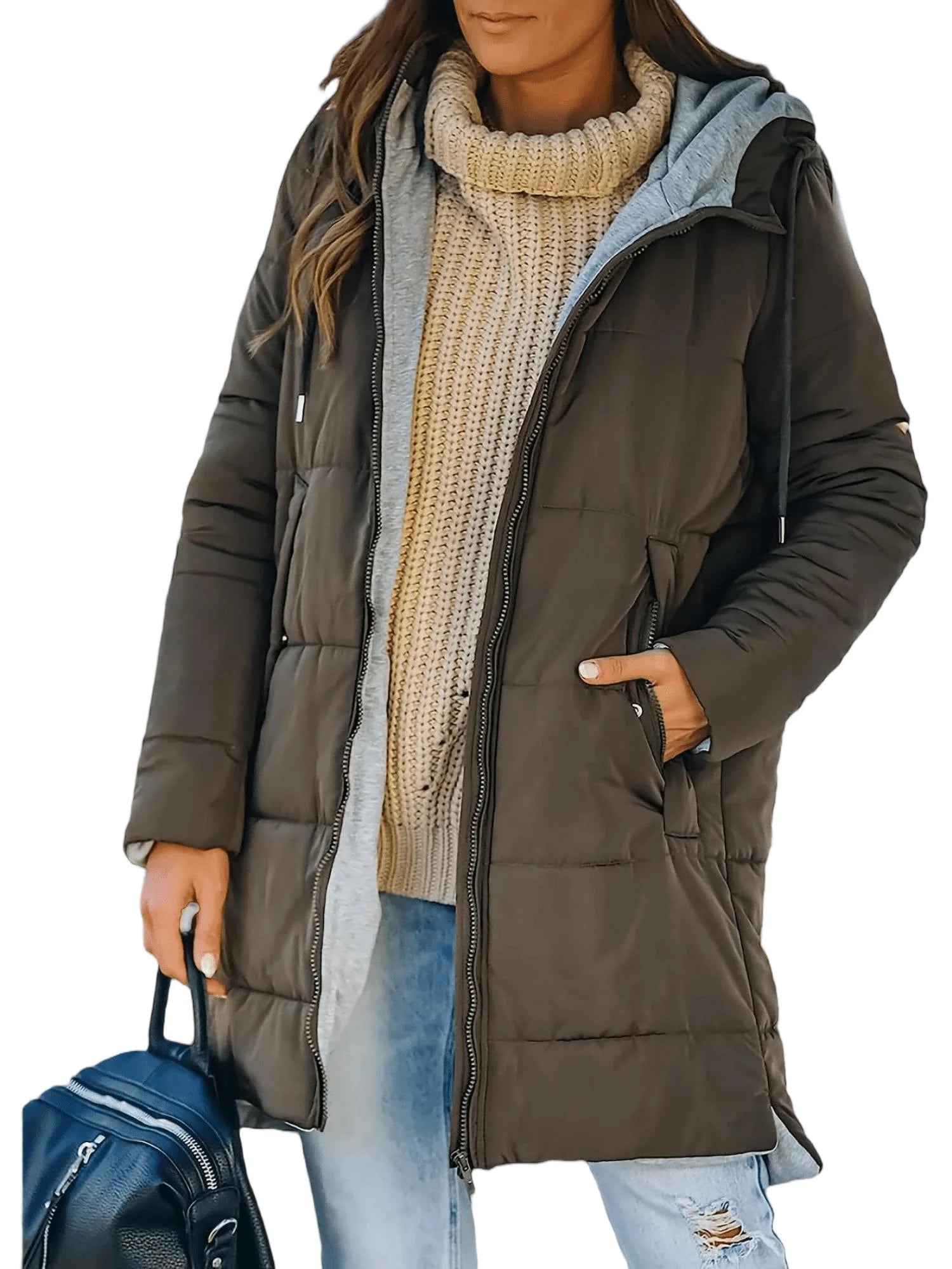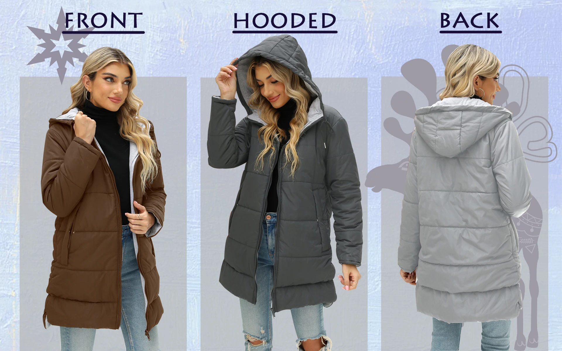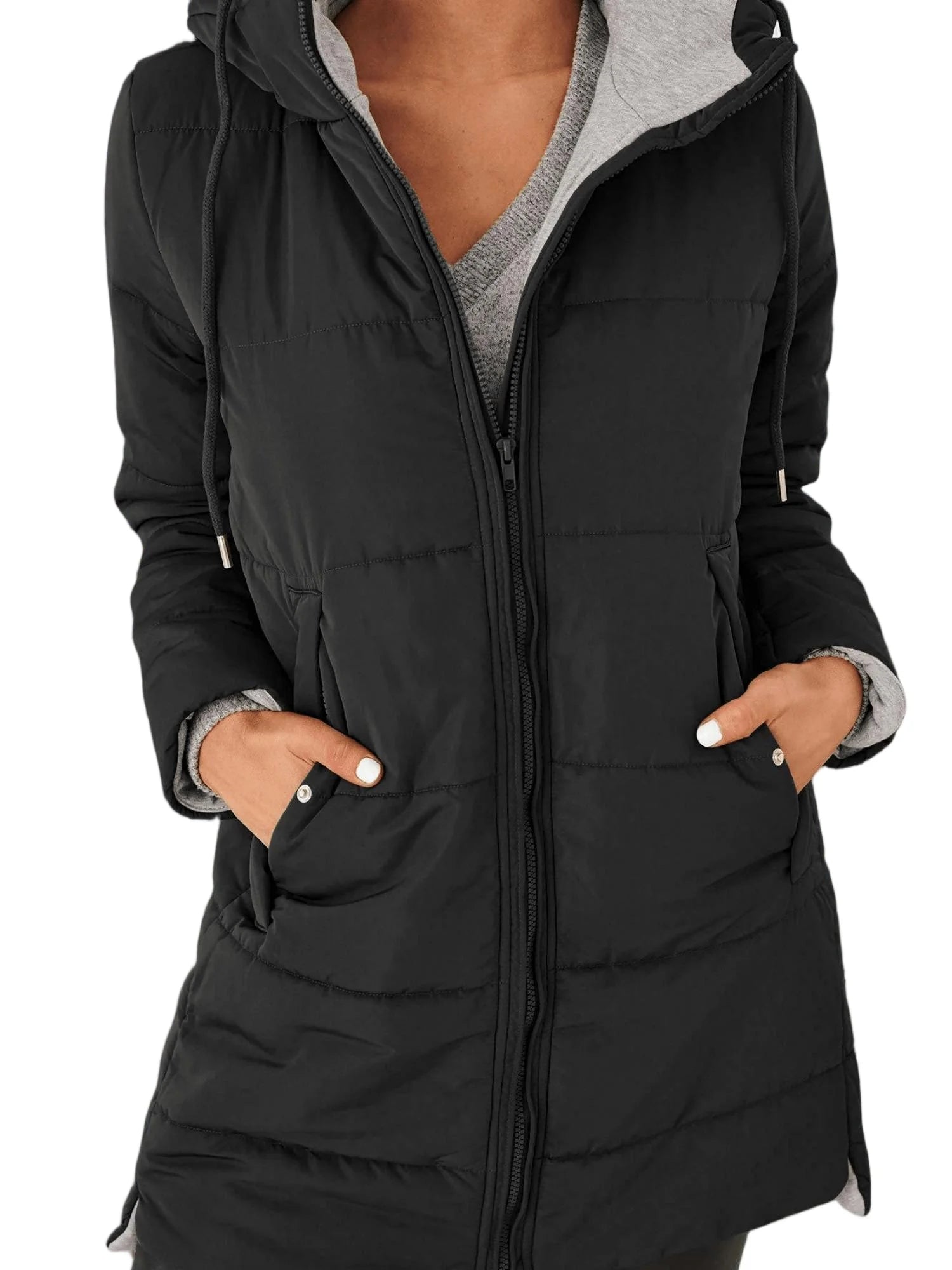 She Shimmer - Women’s Hooded Quilted Mid-Length Jacket