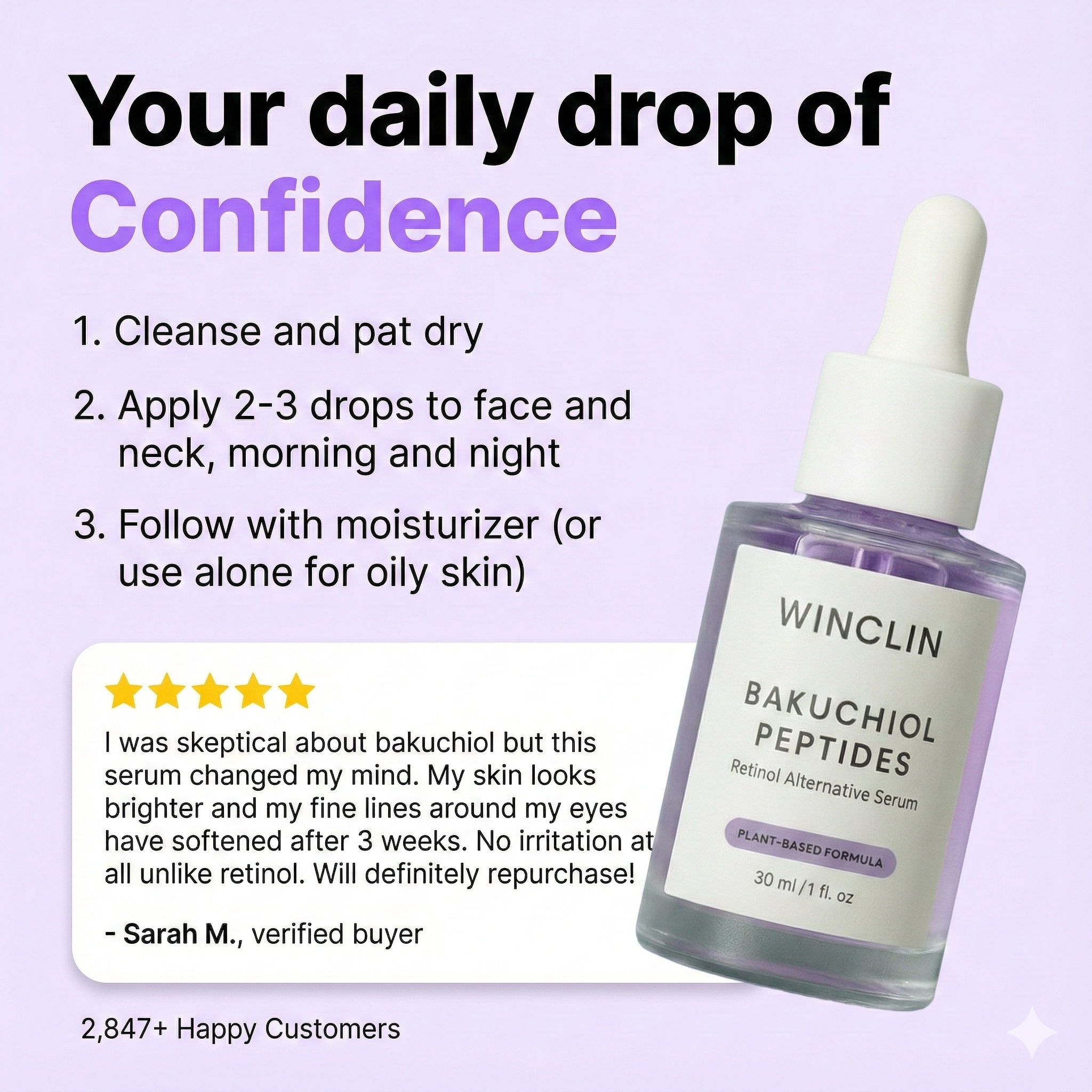 Bakuchiol is a clinically proven plant-based ingredient that mimics retinol's benefits without the harsh side effects like dryness, redness, or peeling. Get smoother, firmer, more youthful skin the gentle way.