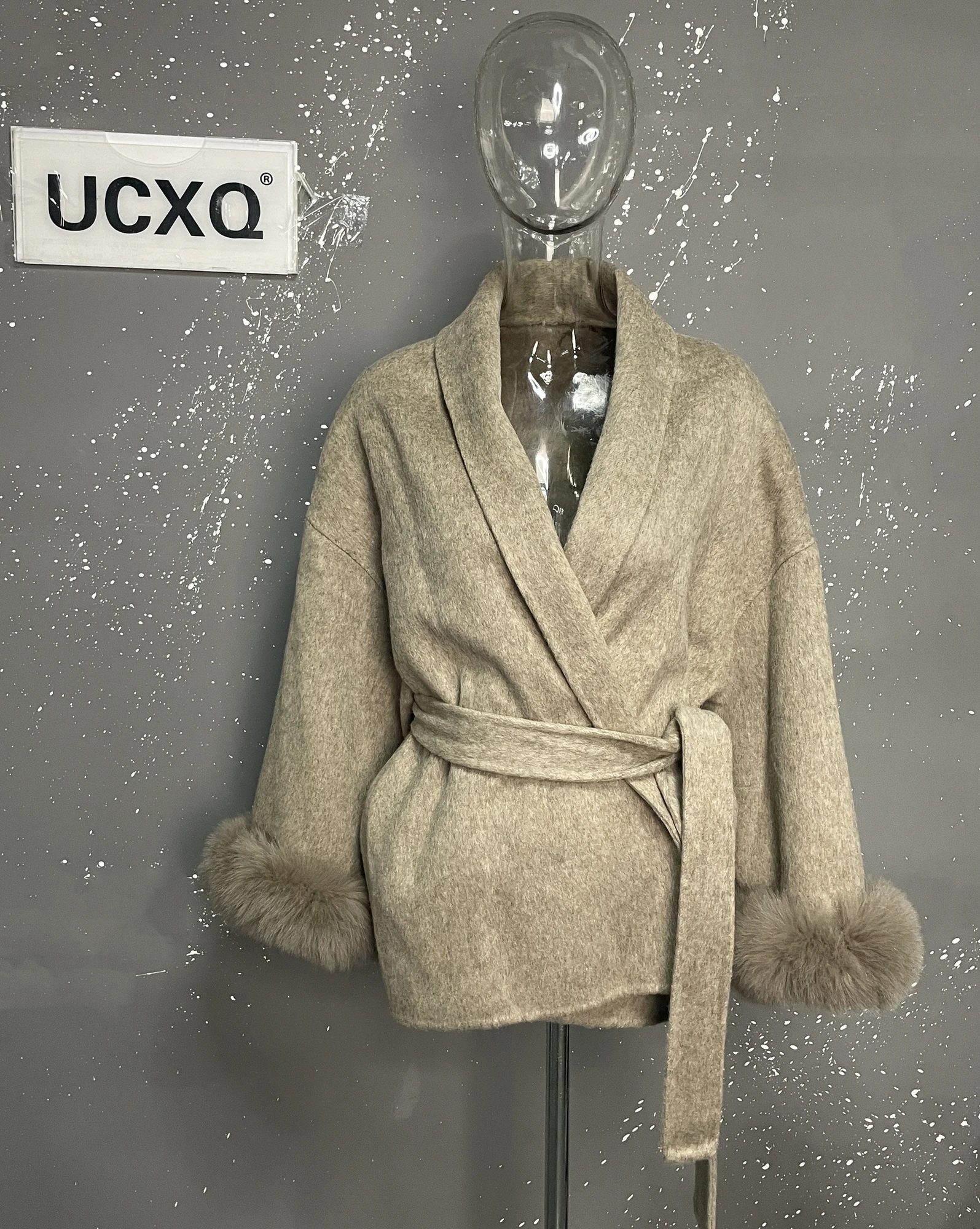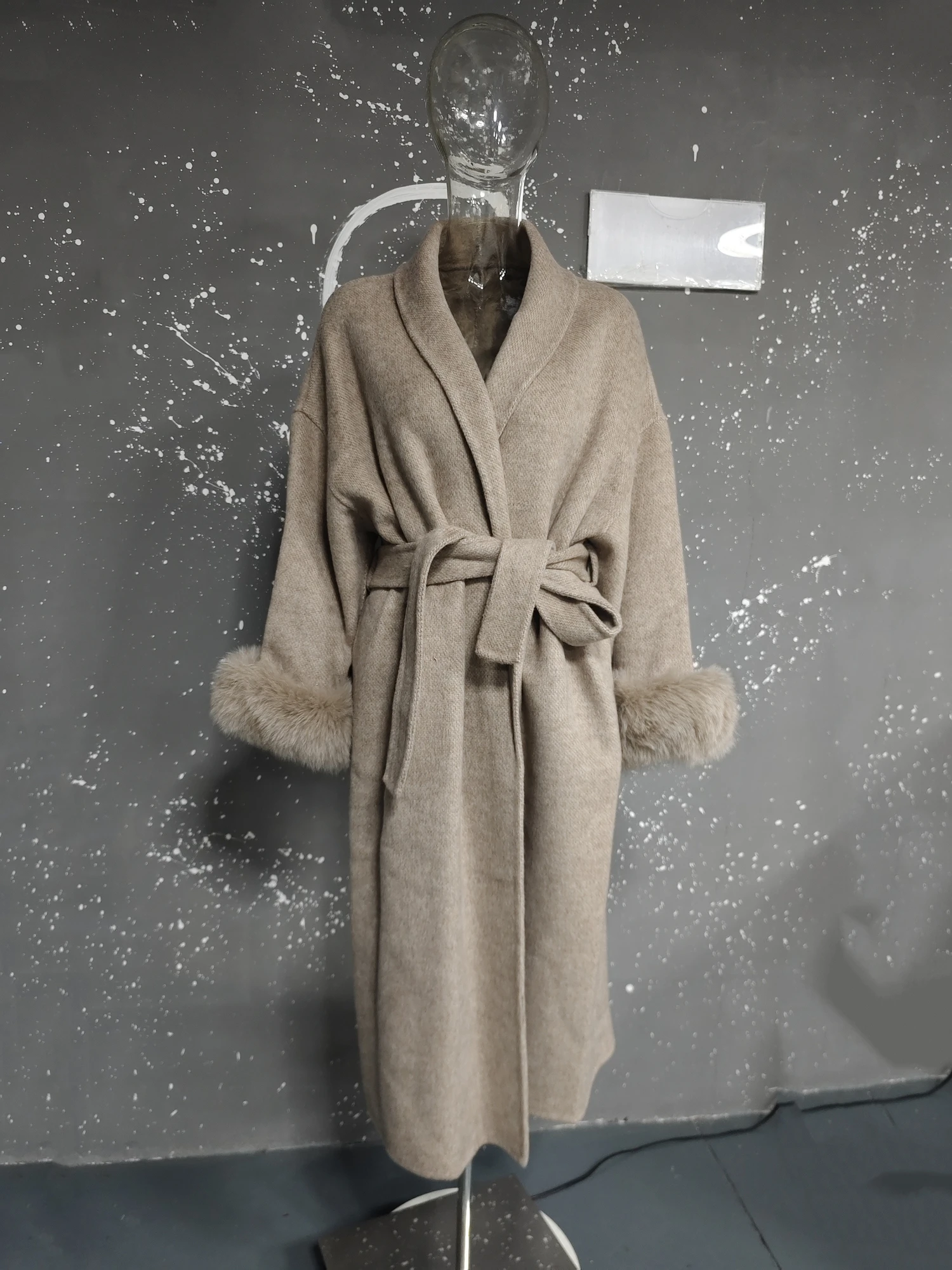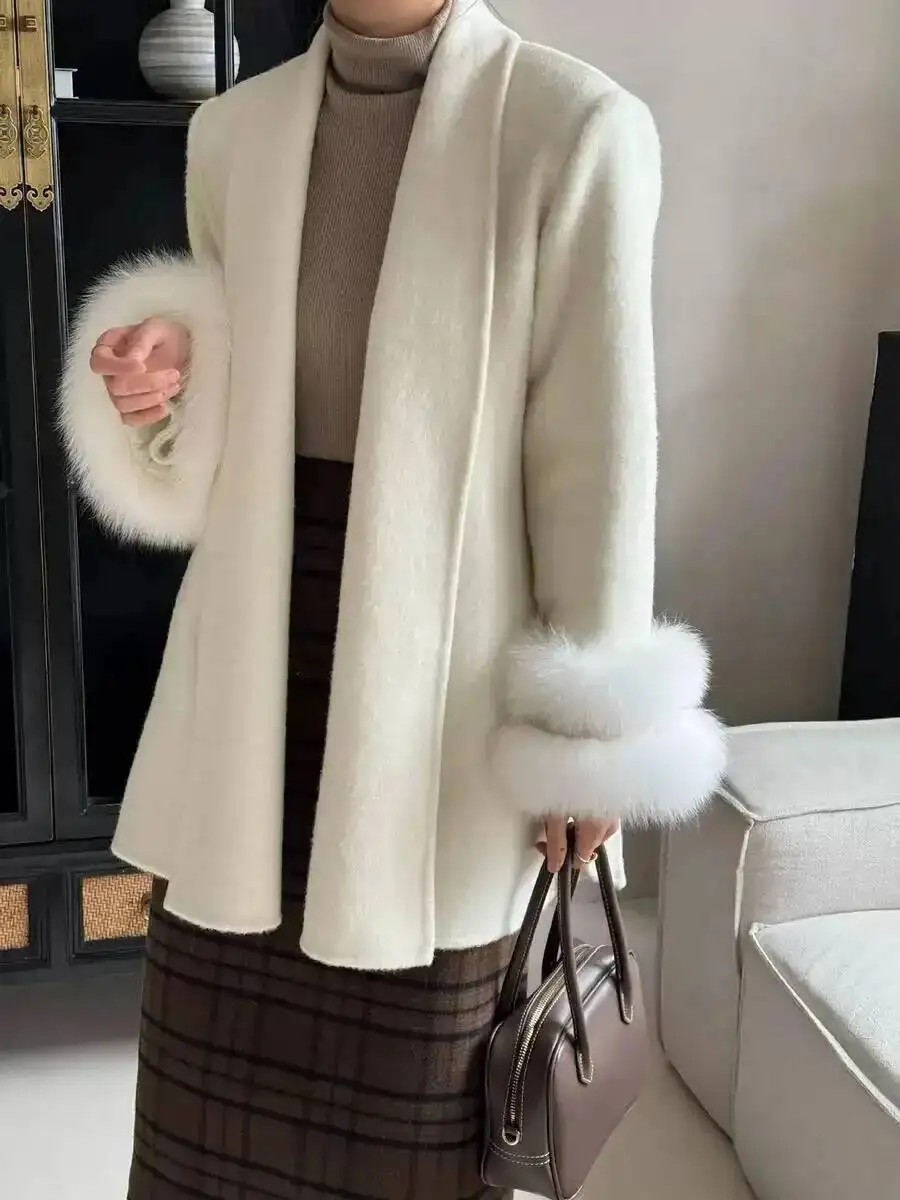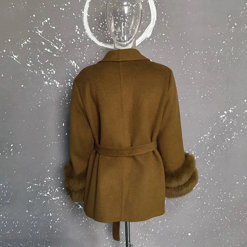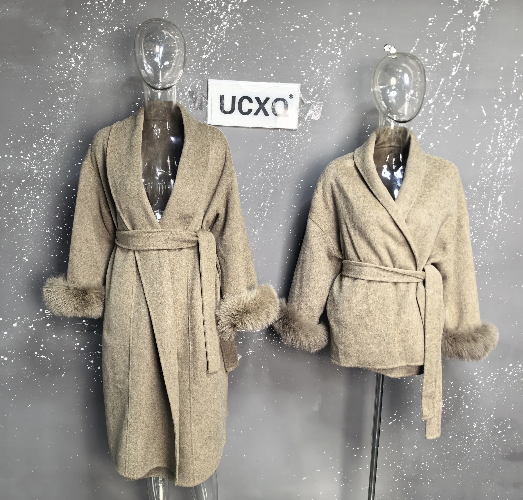 As duas últimas fotos são jaquetas de lã de manga comprida com dois casacos de lã de pele de raposa