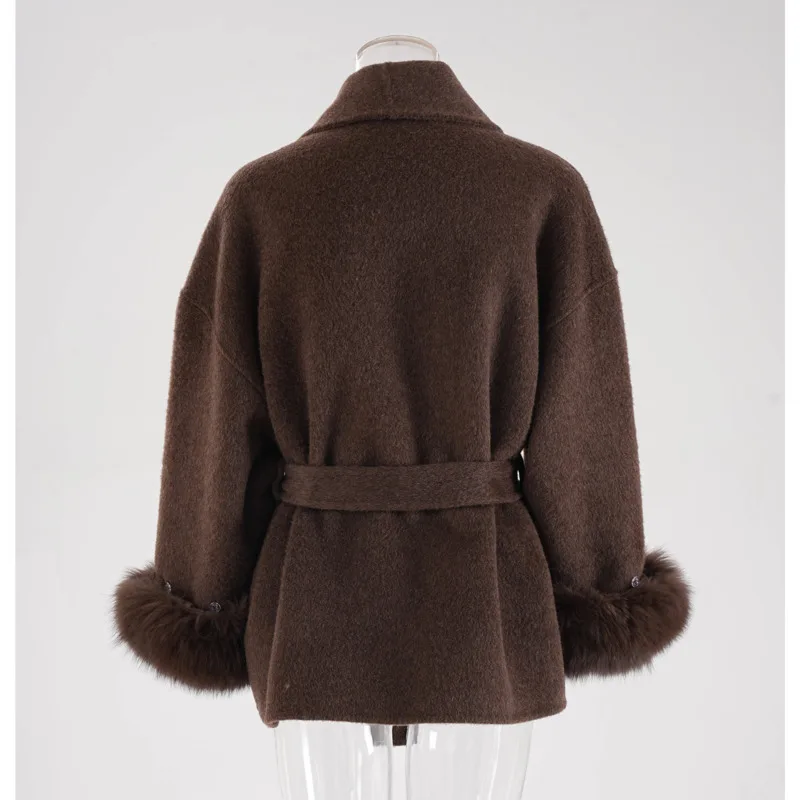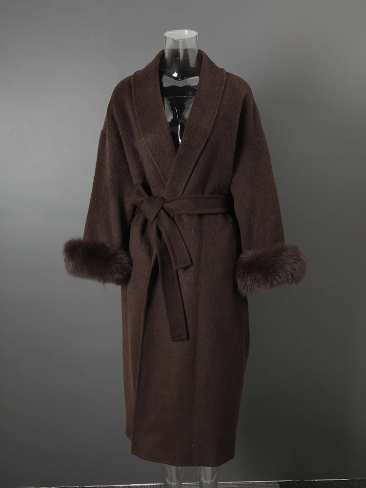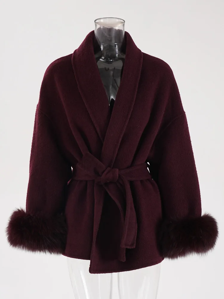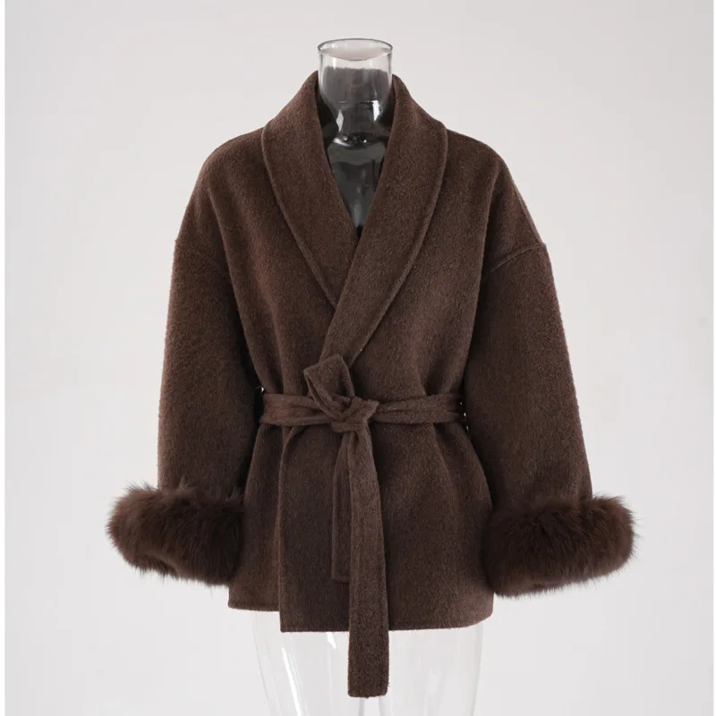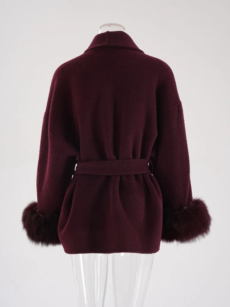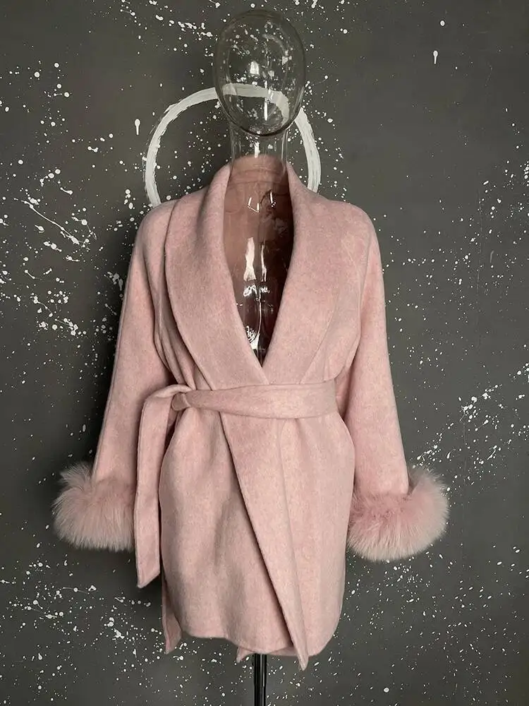 As duas últimas fotos são jaquetas de lã de manga comprida com dois casacos de lã de pele de raposa