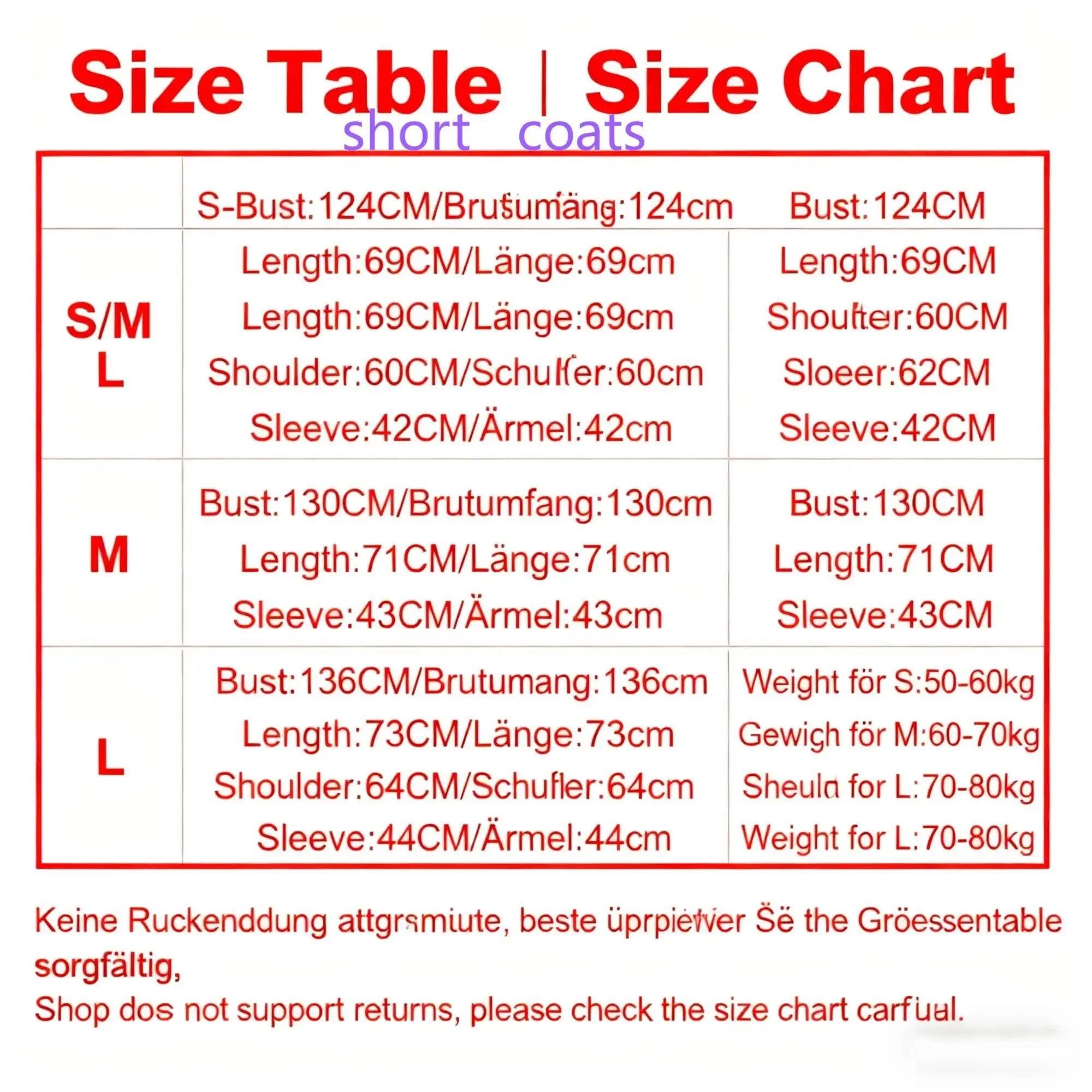 S Busto: 124 CM Comprimento: 69 CM Ombro: 60 CM Manga: 42 CM M Busto: 128 CM Comprimento: 70 CM Ombro: 61 CM Manga: 43 CM G Busto: 132 CM Comprimento: 71 CM Ombro: 62 CM Manga: 44 CM TAMANHO Padrão Longo (Unidade: CM):S,M,L (1 polegada = 2,54 cm, 1...